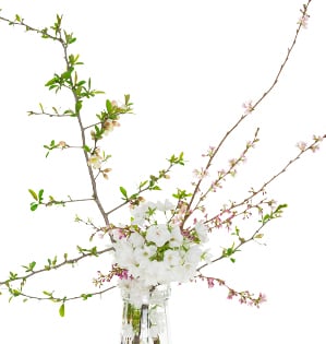 Design notes: Frequently displayed alone in a vase, these beautiful blossoms and branches are a wonderful accent in mixed spring arrangements. Blooming Spring Branches are best suited for arranging in a vase of water. They are short lived in floral foam.