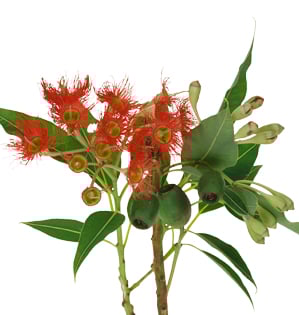 Description: Over 200 species of foliage of widely varying shapes. The three primary varieties available to floral designers are Baby Blue Eucalyptus - blue-grey rounded leaves encasing a stiff upright stem, Seeded Eucalyptus - elongated willow like leaves and delicate seeds on long draping stems. Round, oval shaped leaves with seeds on flexible branching stems. Numerous species grown for the distinctively shaped seed pods.