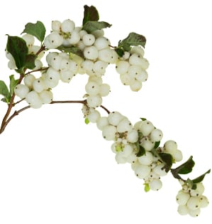 Design notes: Snowberry's small, round berries add unique texture to fall and winter floral arrangements. They contrast well with the shapes and textures of other flowers and foliage, creating visual interest and dimension.