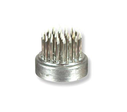 This kenzan consists of a heavy metal base embedded with upright, sharp pins. These pins secure flower and foliage stems in place, holding them at precise angles without the need for floral foam. It allows the designer to insert stems firmly and individually, ensuring control over placement, direction, and spacing.